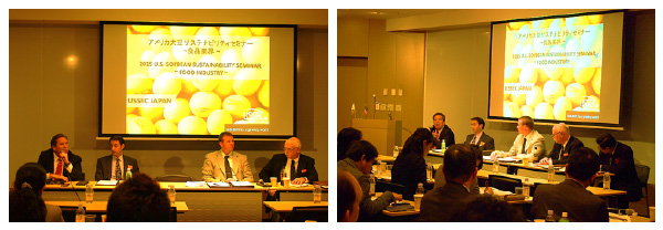 世界約80ヶ国で米国大豆の海外市場拡大・輸出販売促進をおこなうアメリカ大豆協会日本事務所(本部:米国ミズーリ州 U.S. Soybean Export Council) は、2015年1月28日、29日、30日の3日間、東京の六本木アカデミーヒルズ、及びホテルオークラにて「アメリカ大豆のサステナビリティ認証プロトコル実施のご紹介」をテーマにセミナーを開催しました。