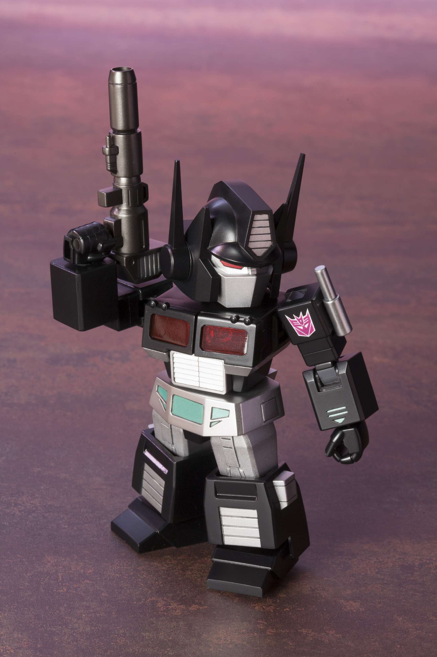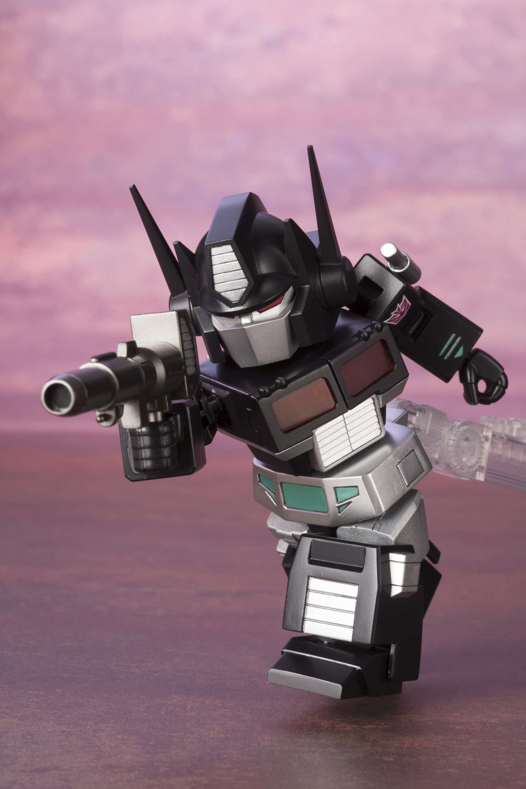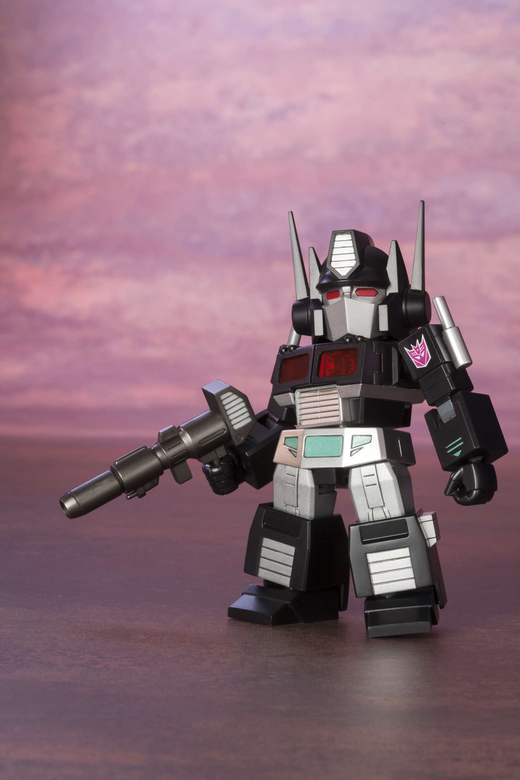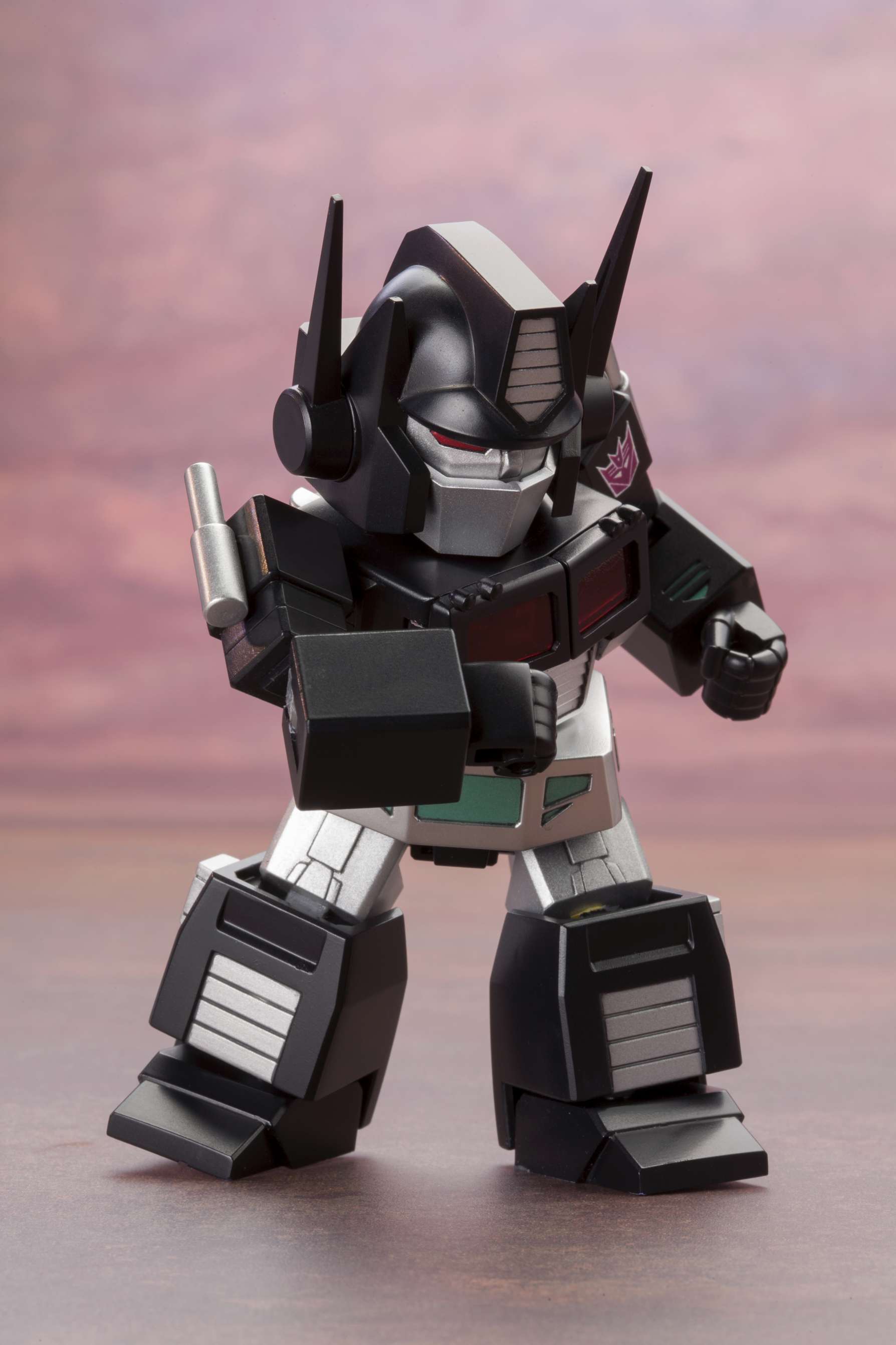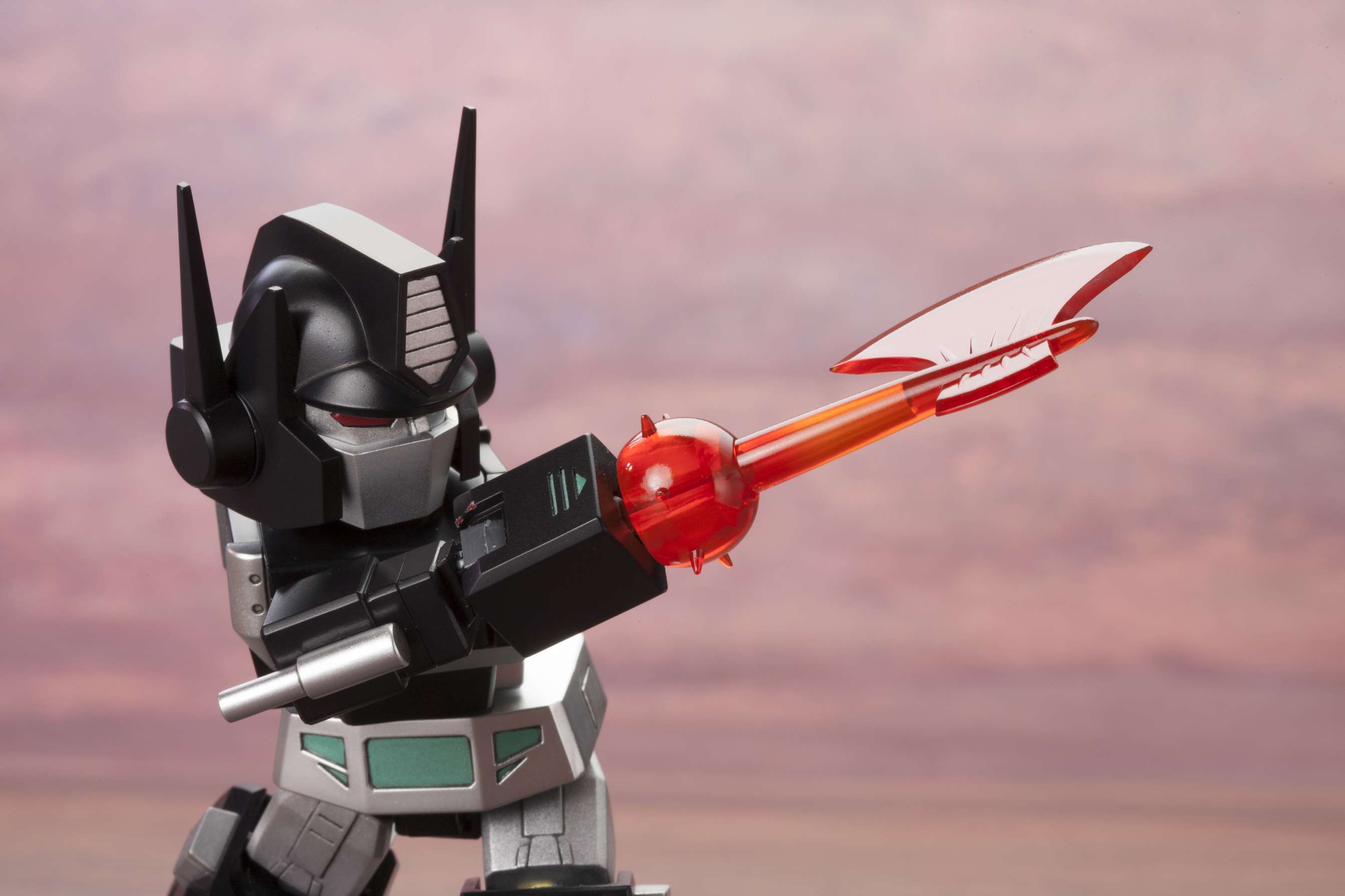 D-スタイル『トランスフォーマー』シリーズに“悪のコンボイ”がラインナップ。星帝ユニクロンにより複製されたコンボイのクローンで、コンボイ司令官と同じ姿、武器、変形能力を持った人気悪役ロボットです。デフォルメながら遊び心あふれるギミックと付属品でプラモデル化しました。武器はレーザーブラスターとバトルアックスの2種、また新規造型パーツ「ジェットパック」も付属し、「D-スタイル コンボイ」の背中にセットすることが可能です。さらにビークルモードをイメージした「トレーラー」も付属します。アンテナを動かすとマスクが連動して発声時の動きを再現できます。発売中の「D-スタイル」『トランスフォーマー』シリーズと合わせて、ぜひお手元でお楽しみ下さい。