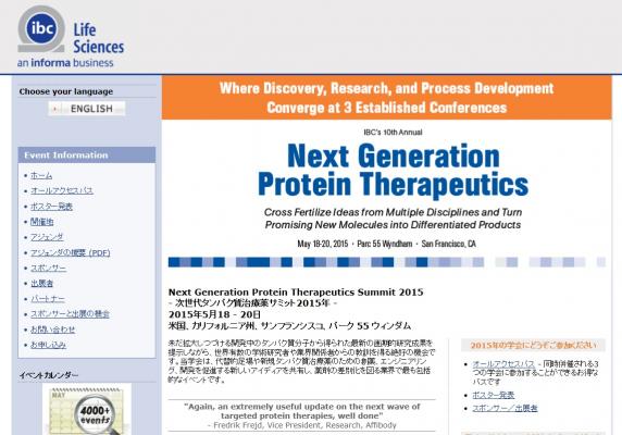 学会:「Next Generation Protein Therapeutics Summit 2015-次世代タンパク質治療薬サミット 2015年」