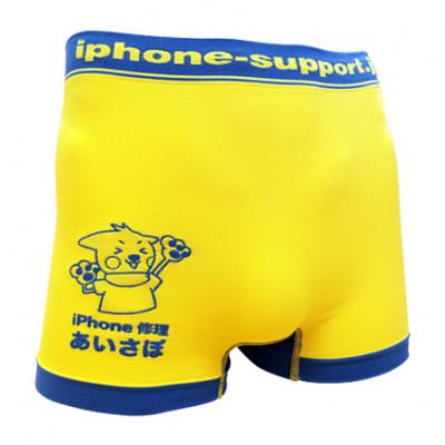 プレゼントするパンツはあいさぽのマスコットキャラである「あいさぽくん」をイメージした黄色と青のビビットなカラーリングのボディが特徴で、イラストやロゴは全て刺繍になっております。