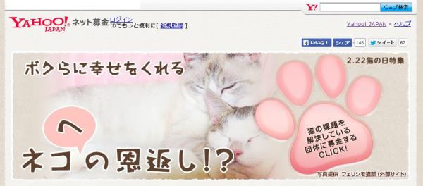 ■「Yahoo!ネット募金」の「猫への恩返し」特集ページ