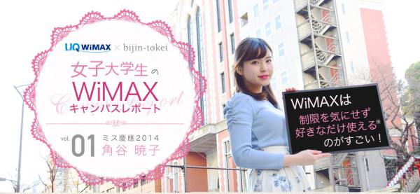 美人時計、美人天気などを手がけるBIJIN&Co.は、UQコミュニケーションズとのコラボ第2弾企画として、現役美人女子大生たちのリアルな視点で、WiMAXの体感レポートをお届けする「WiMAXキャンパスレポート」を2015年2月20日より公開しました。