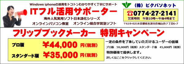 株式会社ビクパソネットは、高性能・多機能電子ブックを無制限に作成できる「フリップブックメーカー」をキャンペーン価格 35,000円(税別)~ で販売しています。