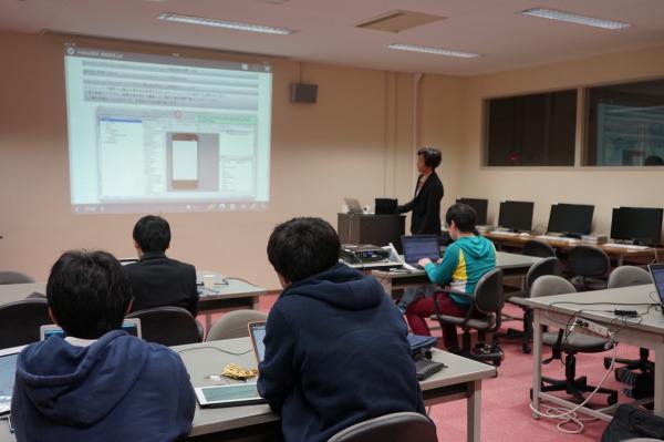 学生8名と教職員3名が受講し、Andoridアプリの開発環境の基本的な使用方法や、実際にアプリケーションを開発するカリキュラムを2日間に渡って実施いたしました。