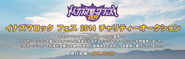 ブランディアはイナズマロックフェスのスローガンに賛同し、コラボレーション企画としてイベント出演者が出品するチャリティオークションを2013年から2回に渡り開催しています。