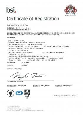 クライアントのニーズに適合したサービス・クオリティの高い制作物を提供するため、2012年3月に品質マネジメントシステムの国際規格であるISO9001認証を取得し、今回は2度目の更新となりました。