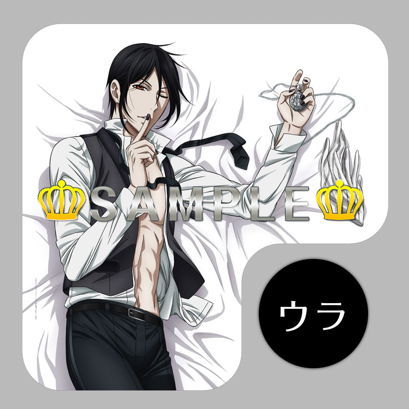 ファントムハイヴ家執事にして悪魔「セバスチャン・ミカエリス」、表面には余裕のある笑みを湛え、誘うような仕草が、裏面にはシャツを着崩した貴重な姿が描かれています。ファントムハイヴ家当主にして“女王の番犬”「シエル・ファントムハイヴ」、表面にはシーツに横たわり、大きな瞳でこちらを見つめる姿が、裏面には13歳の少年らしい寝顔が魅力的に描かれています。