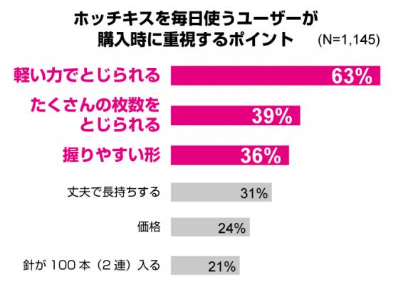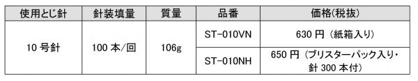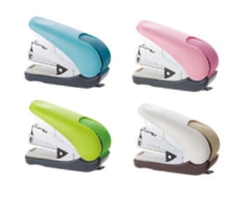 今回のリニューアルでは、一部機構の見直しにより、今までの20枚とじから、約32枚までの「厚とじ」に対応することで、ユーザーがホッチキスに求める“3大要素”※3である「軽とじ」「厚とじ」「握りやすさ」をすべて実現。さらに本体カラーをデスクに映えるフレッシュな配色のブルー、ピンク、グリーン、ホワイトの全4色に一新しました。メーカー希望小売価格(税抜)は紙箱入りが630円、針300本がセットになったブリスター パック入りは650円です。
