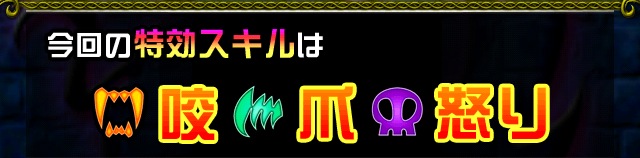 今回のコロシアムの「特効スキル」は、咬・爪・怒りです。これらのスキルを所有するカードをバトル