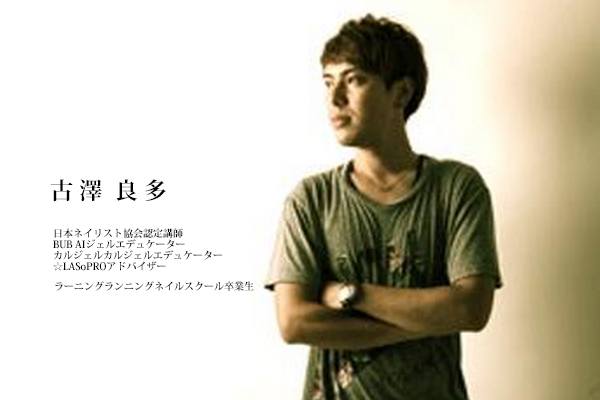 古澤良多先生は、ラーニングランニングネイルスクールを卒業後、国内外のサロンを経験され、海外のコンペティションでも優勝経験もあります。何と言っても、抜群のアートセンスを持つ先生で、現在は、神戸三ノ宮のネイルサロンLAS NAILS KOBEオーナー兼ディレクターでもあります。今回は、古澤先生がエデュケーターを務める「BUB AIジェル」のベーシックコース講習会です。