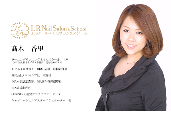 ケーター、カルジェルエデュケーター、LASoPROアドバイザー。三ノ宮、渋谷、LAなどでサロン経験。アメリカ、カリフォルニア州ネイル