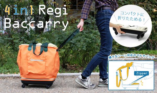 キャリー、ハンディ、ショルダー、レジバッグ、4通りの方法で使える便利なレジバッキャリー。