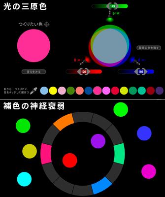色の混ぜ合わせや「補色」の考え方が、直感的に理解できる。