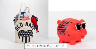 このたびのオープンを記念して各新店舗ともオープン日にはOLD NAVYオリジナルトートバッグやピギーバンク(ブタの貯金箱)などOLD NAVYらしさあふれる楽しいプレゼントをご用意してお待ちしています(詳細については随時OLD NAVYのウェブサイトや公式SNSサイトにておしらせいたしますのでご確認ください)。