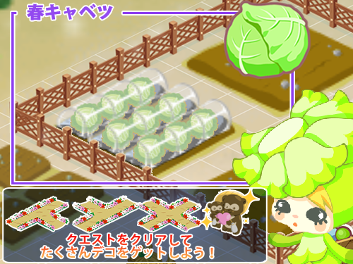 本日より、期間限定イベント「畑っぴ春の野菜まつり」実施します。指定された作物を育ててクエストを達成していただくと、コインやラブポやデコを報酬としてプレゼントいたします。ここでは春野菜の春キャベツについてちょっと詳しくなれます♪