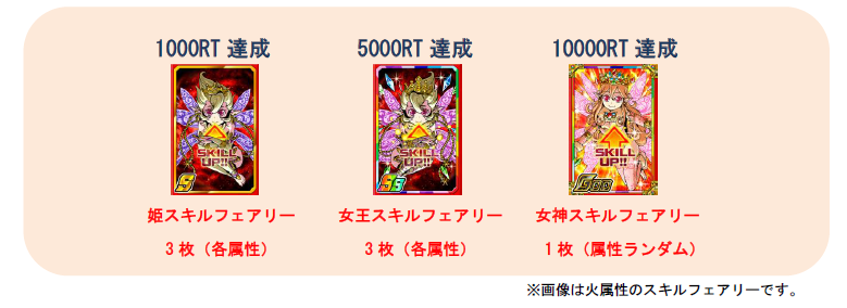このツイートが1万RT達成したらユーザー全員に女神スキルフェアリーをプレゼント!