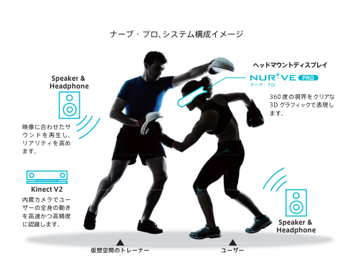NUR*VE(ナーブ)はVRの世を身近に感じてもらえる プラットフォームです。ここでは、超一流トレーナーが開発したスペシャルトレーニングをあなただけに プライベートレッスンいたします。 トレーニングメニューは、ボクササイズをはじめ、ヨガ、 下腹部トレーニング、ランニング、エアロバイクなど様々なジャンルを予定しており、今後も新しいトレーニングコンテンツを次々と提供する予定です。