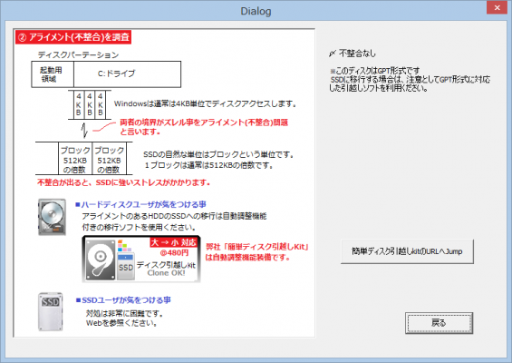 事前にアライメント問題の発生の可能性を調査し、SSD化する時にアライメント問題の自動調整機能を装備したマイグレーションソフトを使用するべきか否かをレポートします。
