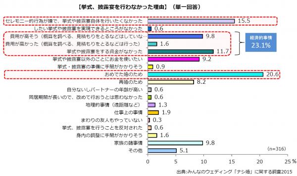「経済的事情(23.1%)」「さずかり婚(20.6%)」「セレモニー的行為が嫌(15.5%)」
