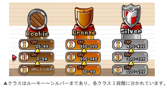 「リーグ」では階級ごとにクラスが分かれており、自分の「うまP」の値に応じたクラスに振り分けら