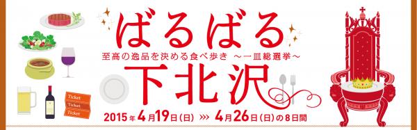株式会社パイプドビッツ(本社 東京都港区、代表取締役社長CEO 佐谷宣昭、証券コード3831、以下「パイプドビッツ」)が運営する、地域密着型SNS「I LOVE 下北沢」(URL:http://love-shimokitazawa.jp/)は、下北沢商店連合会が2015年4月19日(日)から4月26日(日)まで開催する、56店舗もの下北沢エリア飲食店にて均一料金(チケット制)でドリンク付きいちおしメニューを食べ歩き、また食べたい逸品に投票するグルメイベント「ばるばる下北沢」に協力し、参加店舗集めやイベント告知、運営、投票クラウドサービスなどを提供します。また、「ばるばる下北沢」の関連企画として、立候補料理のSNS人気投票「見た目一皿総選挙」を開催するほか、「ばるばる下北沢」参加店舗中30店舗にて2015年4月の統一地方選挙に投票した有権者にデザートや小鉢などをサービスする「選挙割」を実施するので、併せてお知らせいたします。
