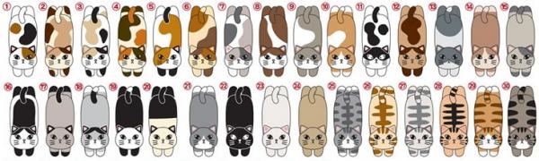 商品化にあたってアンケートを行い、得られた回答をもとに、ビーズの入った手洗いできる仕様で製品化されました。また、デザインも30柄の中から、人気だった上位6柄を採用しました。選ばれたデザインは、ミケ、ハチワレトラ、サバトラ、クロ、トラ、ハチワレの6種類。全部あつめて、「多頭飼いで猫に囲まれちゃって大変!」というシチュエーションをお楽しみいただけるコレクションとなりました。