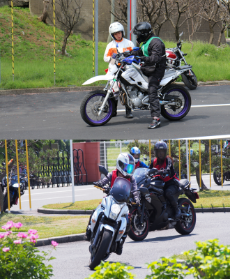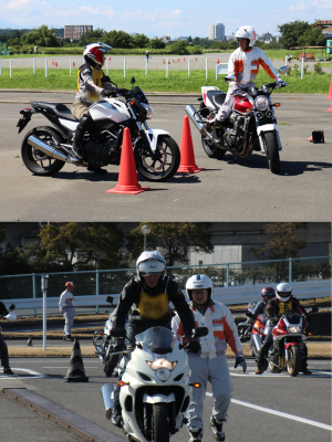 グッドライダーミーティングは、二輪車で走る楽しさの中から安全行動に気付いてもらう、体験型実技講習です。