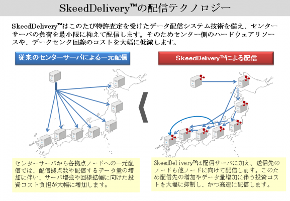 なお、同技術はすでに多拠点・多店舗配信ソリューション「SkeedDeliveryTM」(2012年11月発売開始)に実用化されているほか、Skeedが研究開発中のIoT(Internet of Things)分野におけるネットワーク基盤技術・製品への応用が期待されるものです。