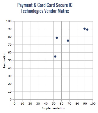 ABI Research’s Payment & Banking Card Secure ICs Technologies competitive assessment takes a closer look at the current market status quo, providing an independent look at each vendor’s current market position, strategies, and future outlook. Included in the competitive assessment is a vendor matrix whereby all the major secure IC vendors operational within the payment cards market were judged and scored according to a set of criteria falling within the broader “Implementation” and “Innovation” categories. Each vendor was assessed against a total of 10 criteria and accordingly ranked based on scores achieved.