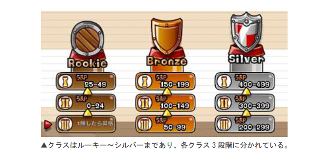 「リーグ」では階級ごとにクラスが分かれており、自分の「うまP」の値に応じたクラスに振り分けられます。