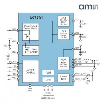 ams(日本法人:amsジャパン株式会社、東京都品川区、カントリーマネージャー 岩本桂一)は本日、設置面積が極めて小さく、ウェアラブル端末などスペース制限のあるデバイスに最適な統合型パワーマネジメントユニットAS3701を発表しました。