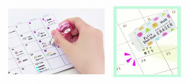手帳の予定変更や引き間違いを消したい時も安心。「プチデコラッシュ」のデコレーションを消すのに適した素材を選んだ専用消しゴムをご用意しました。