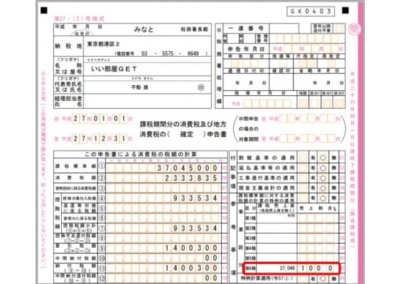 【画像】消費税申告書出力(部分)