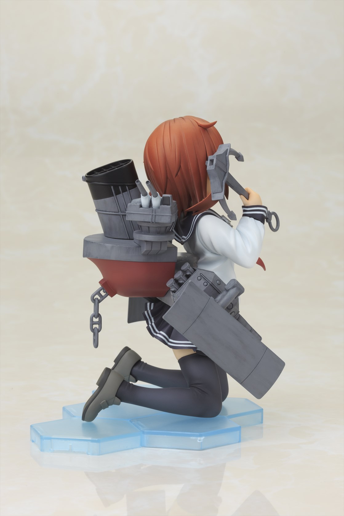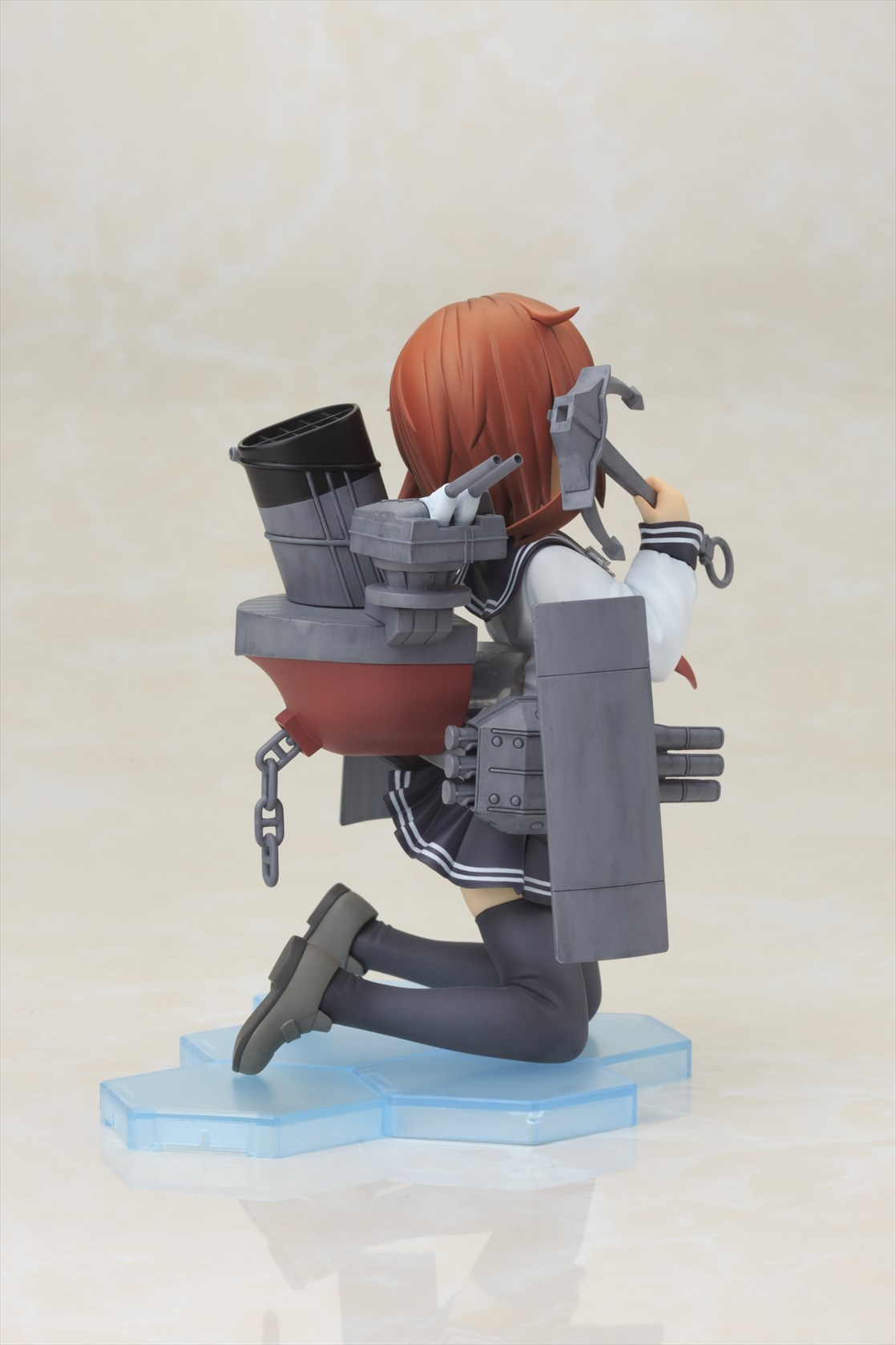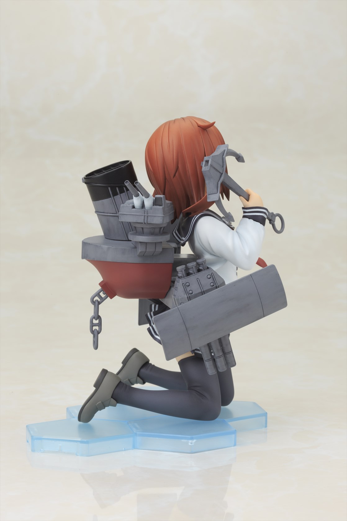 可愛らしいキャラクターデザインや艤装の各部など細かい部分もアニメ設定を再現しております。元気いっぱいのポーズや、幼い外見でありながら包容力のある明るく元気な表情は「雷」そのもの。艤装はシールド・魚雷・主砲部分が可動。細部まで精密な造形で、重厚感のある塗装に仕上げました。同型艦の「電(いなづま)」も発売予定で、二人を揃えて並べて頂ける仕様となっております。