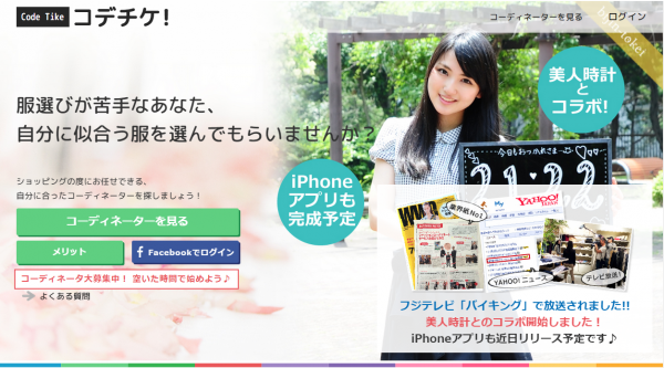 オシャレが苦手な人と得意な人をつなぎ、ファッションで社会を元気したいと昨年秋にサービスを開始した「コデチケ!」。