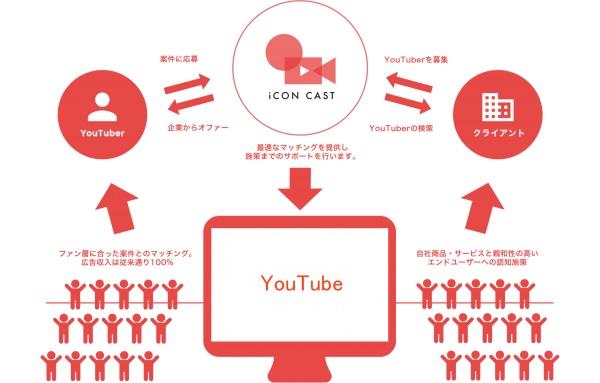 iCON CAST は、広い範囲のYouTuber を対象とし、スポンサーとなる企業の案件を探すことが出来るサービスです。従来スポンサー動画はスポンサーとなる企業側から訴求対象の商品・サービスと親和性の高いYouTuber に対してオファーを行うケースが大半でした。しかし、iCON CAST ではYouTuber 側から案件を選び応募出来る点が新しい価値を提供いたします。