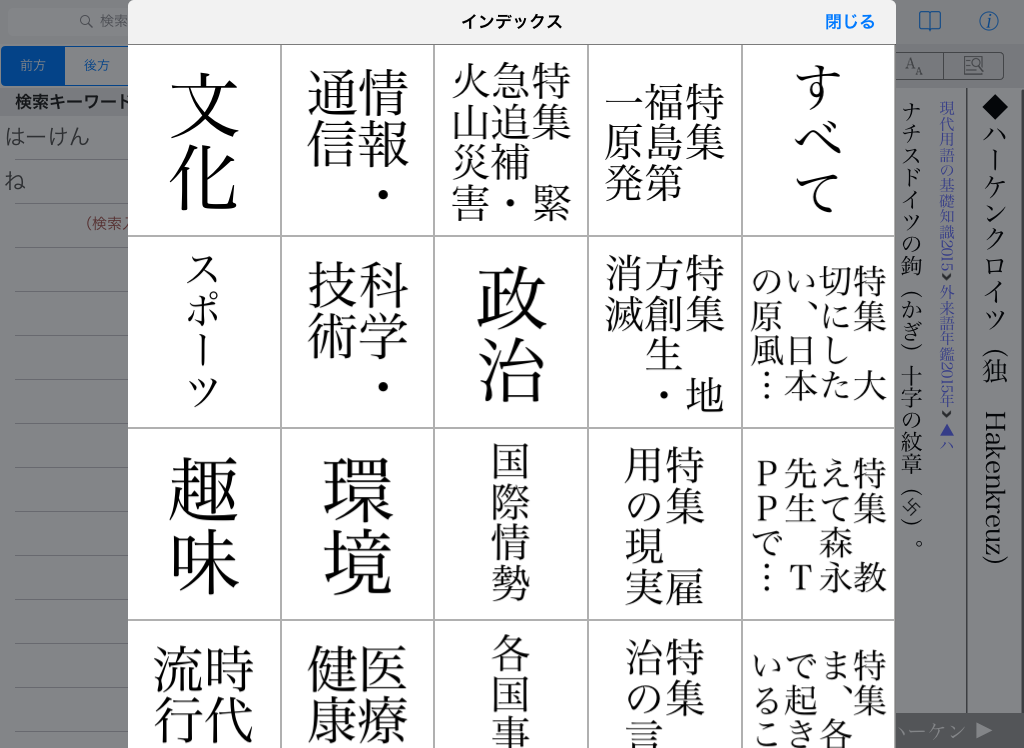 ●本文中の用語をなぞることで次々に辞書引きができるジャンプ検索機能