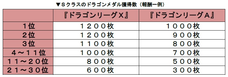ランキングの順位に応じて、ドラゴンメダルを手に入れることができ、