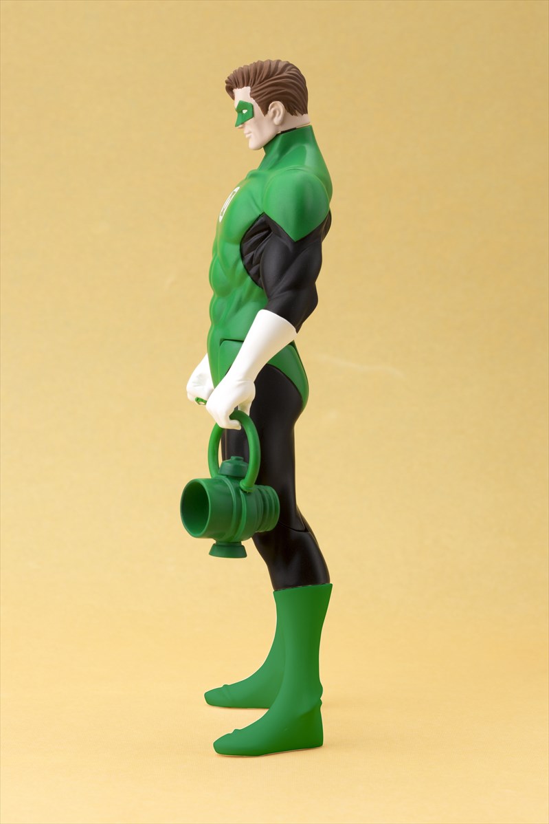 1980年代に展開されたDCコミックスのスーパーヒーロー達のアクションフィギュアにインスパイアされ、今ではほとんど見られない、腕や脚部に入った大胆なパーツ分割線や、成型色を活かした仕上げなど「ノスタルジック」な記号はそのまま継承。顔や肉体の造形と仕上げ品質を、ARTFX+シリーズの「現代」技術で磨き上げ、見た事の無いレトロなフィギュアが誕生しました。ボーナスパーツとして左手に持つのは当時のシンプルな形状を踏襲した緑のランタン。朗らかな笑顔と相まって、ユルい雰囲気にあふれたディスプレイであなたを癒します。