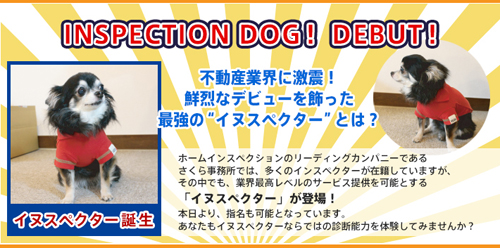 同社は、国交省から公表されている、既存住宅インスペクション・ガイドラインは順守しながらも業界のリーディングカンパニーとして、消費者の不安を解消するためのより良いサービスを安定的に提供すべく、本日4月1日(水)イヌスペクターの募集を開始します。
