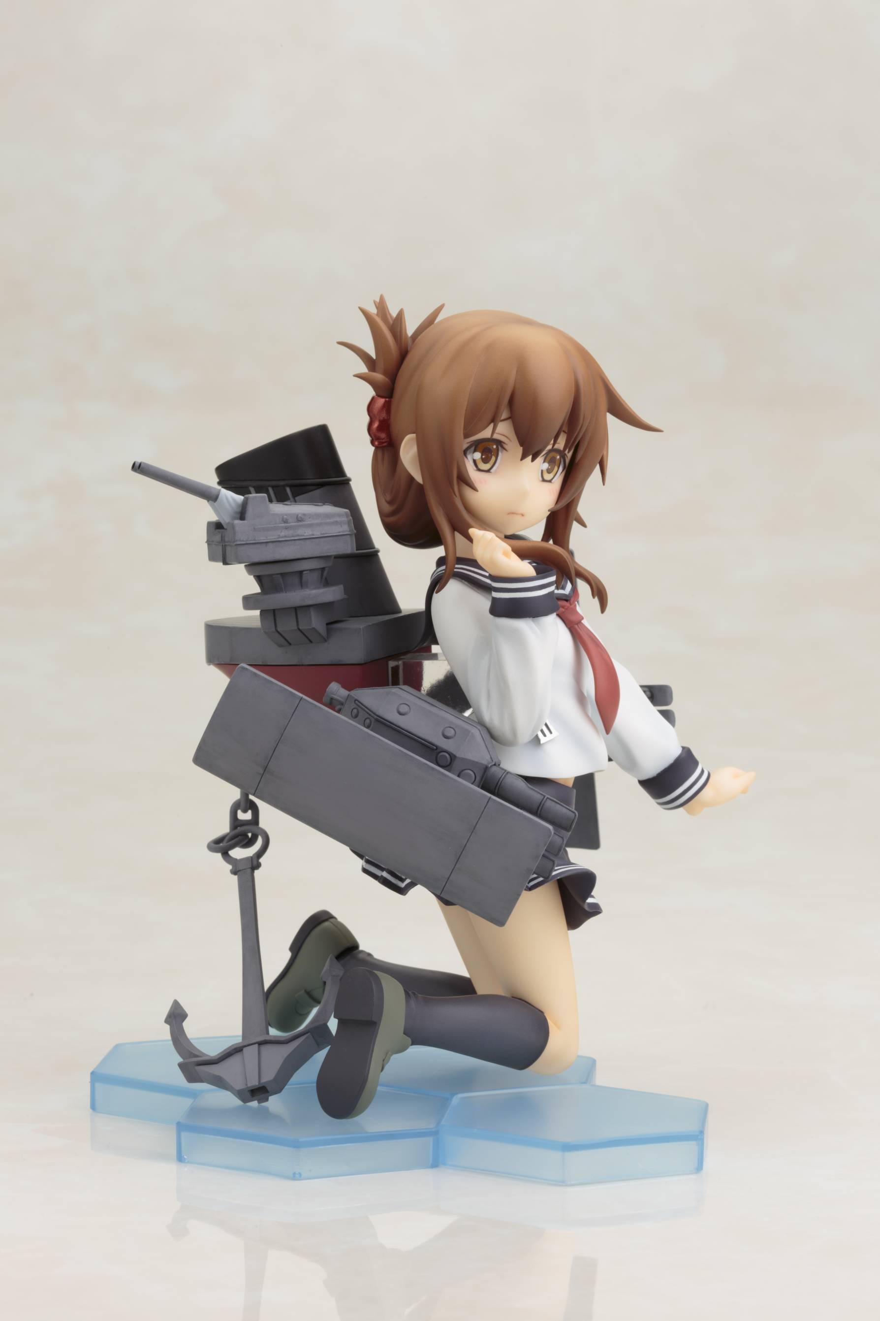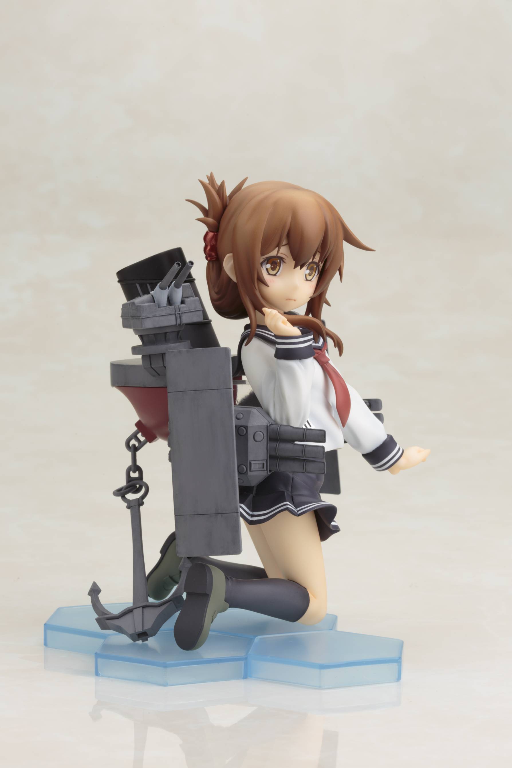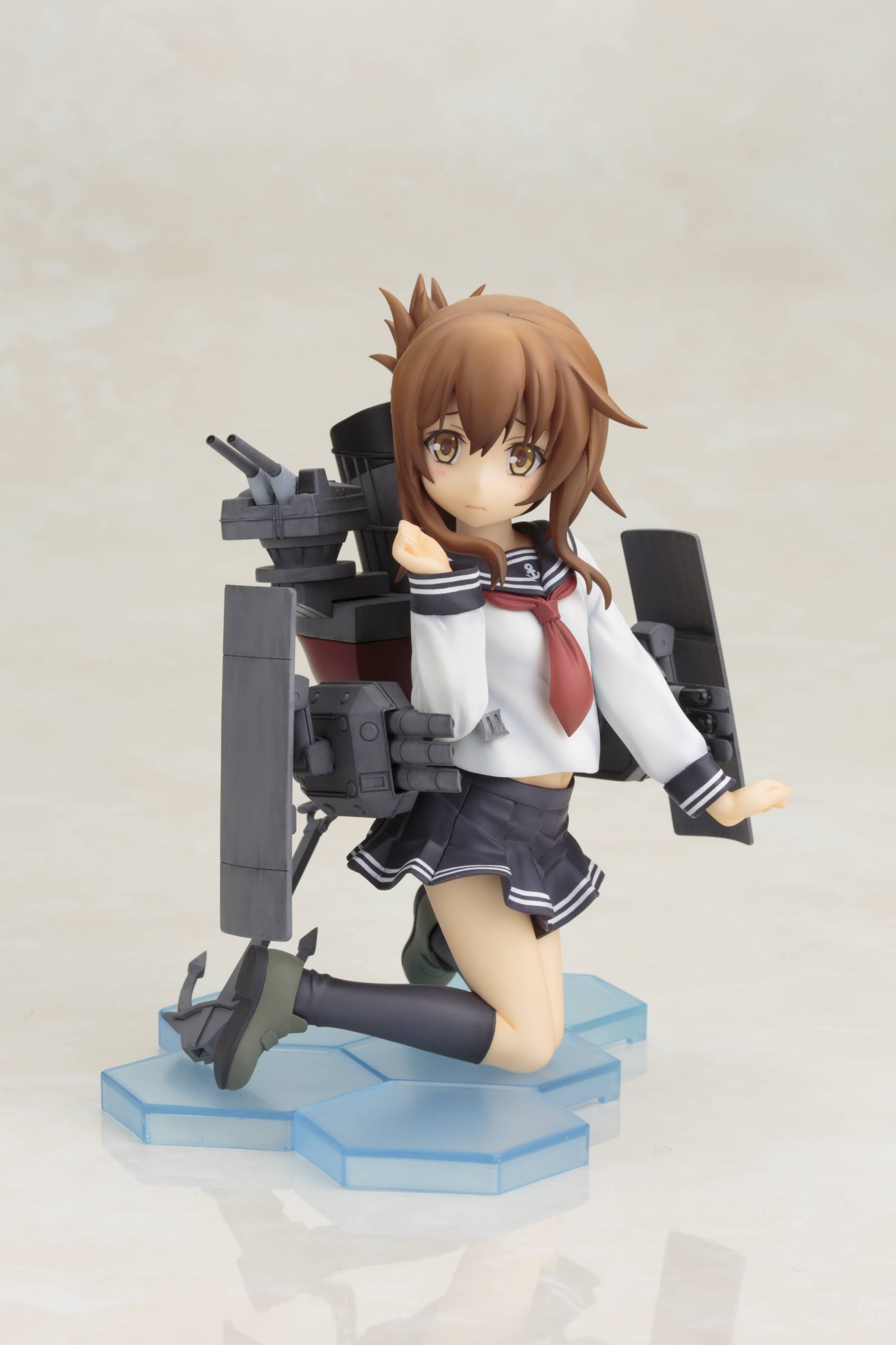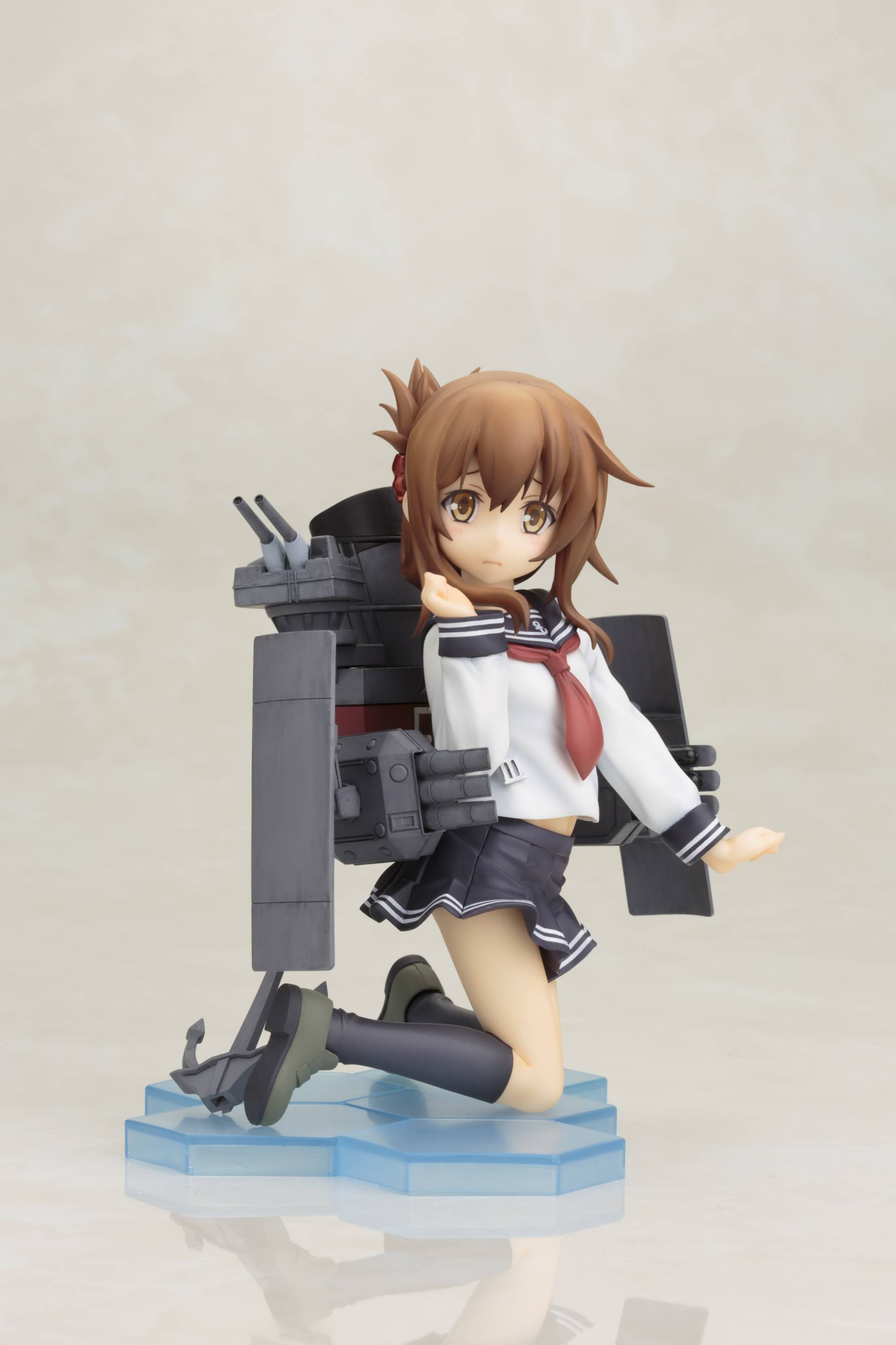 TVアニメが好評を博し、第二期の制作も決定した『艦隊これくしょん -艦これ-』より、暁型駆逐艦の優しくて穏やかな性格の艦娘「電(いなづま)」をアニメ設定バージョンで立体化しました。可愛らしいキャラクターデザインや艤装の各部など、細かい部分もアニメの設定を再現。艤装はシールドや三連装魚雷・連装砲が可動します。同型姉妹艦の「雷(いかずち)」を第一弾として、8月から2ヶ月連続で発売予定です。姉妹艦として性格が対照的な二人は、表情やポージングも対になる仕様。ぜひ二人揃って貴方の執務室にお迎えください。