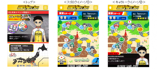 人気TVアニメ『弱虫ペダル』のキャラクターとロードバイクで全国を巡るスゴロクアプリ。