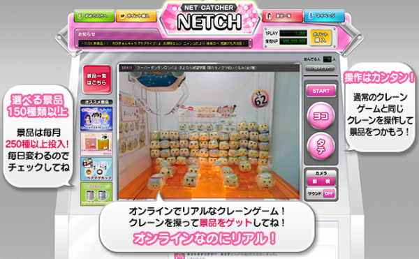 ネッチはインターネット経由でクレーンゲームを楽しむ事ができるサービスです。