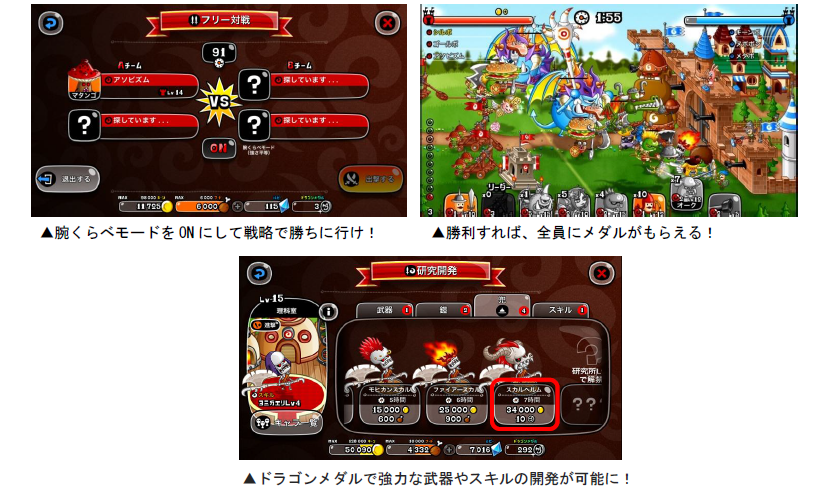 腕くらべモードON で「フリー対戦2vs2」「フリー対戦3vs3」に挑戦し、強力な武器やスキル開発が可