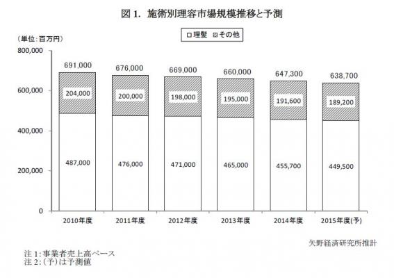 ◆ 2014年度の理美容市場規模は、前年度比98.5%の2兆1,758億円と減少