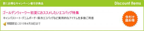 エコバッグ制作センターでは、通常の卸売価格よりも更にお得な値引きキャンペーンを期間限定で開催します。是非、お得なこの機会にオリジナルバッグ制作をご検討ください。お得な値引き期間は、2015年4月30日まで。
