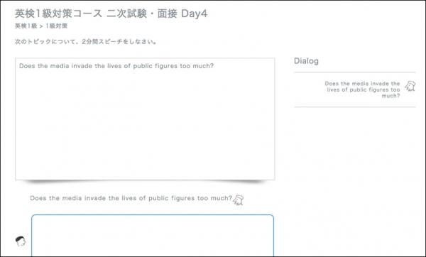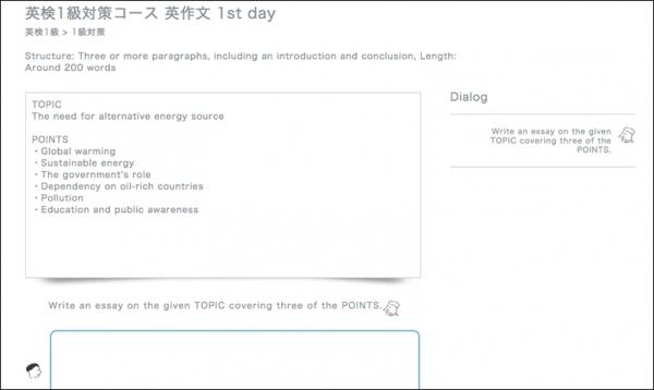各コースでは、旺文社の英検対策シリーズ『英検1級予想問題ドリル 改訂新版』『14日でできる!英検1級 二次試験・面接 完全予想問題』、『英検準1級予想問題ドリル 改訂新版』『14日でできる!英検準1級 二次試験・面接 完全予想問題』に掲載されている英作文問題、二次試験・面接問題を元に、「ベストティーチャー」上でWritingレッスンとSkypeレッスンを24時間いつでも受講することができます。