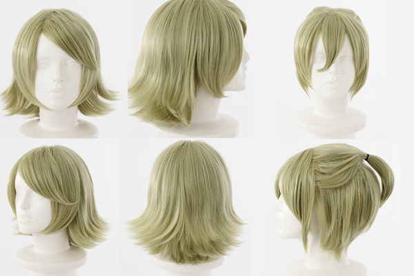 3色の毛を混ぜ合わせた、落ち着いたグリーンのウィッグです。