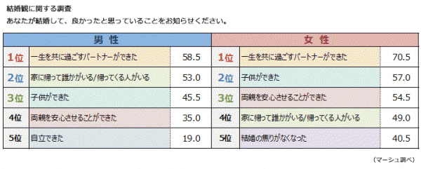 インターネット調査会社の株式会社マーシュ(東京都渋谷区渋谷、代表取締役:町田正一)は、全国在住の女性 16 歳以上、男性 18 歳以上の既婚者(初婚)個人を対象に結婚観に関する調査を実施しました。