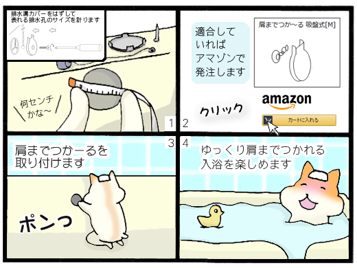 ユニットバスで肩までお湯に漬かりたいけど浸かれない。こんな悩みをズバッと解決する温浴グッズです。